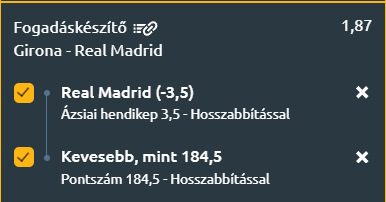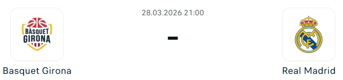 - A találkozó várható képe alapján a Girona hazai pályán képes lehet tartani a lépést, különösen úgy, hogy a Real Madrid kilenc nap alatt az ötödik mérkőzését játssza, és egyértelműen az Euroliga élvez prioritást. A Girona szervezett csapatjátéka és a madridiak fáradtsága miatt a Girona nem kap ki 12 pontnál többel és nem lesz 184 pontnál több a meccsen!
