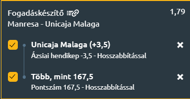 - A Manresa támadásorientált, de védekezésben lyukas játéka és az Unicaja állandóan magas tempója alapján pontgazdag mérkőzés körvonalazódik! Minimum 168 pont várható és az Unicaja megnyeri a meccset, de egy pici plusszos hendivel meg is erősítjük a tippet.