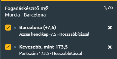 - A Murcia a Liga Endesa második legjobb védelmére épít, mérsékelt tempóban játszik, míg a Barcelona Pascual irányítása alatt szintén a védekezést helyezte előtérbe, így minden adott egy alacsonyabb pontszámú (under 173,5) mérkőzéshez, amit egy +7,5-es hendikeppel megnyerethetünk a Barcelonával!