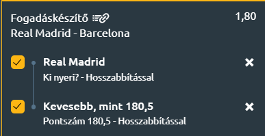 - A formába lendülő, teljes kerettel rendelkező Real Madrid és a sérülésekkel küzdő Barcelona párharcában a hazaiak tűnnek esélyesebbnek. A tipp a Real Madrid meccsgyőzelme összekötve az under 180,5-es opcióval, amit az európai szinten kiváló csapatok remek védekezése indokol.