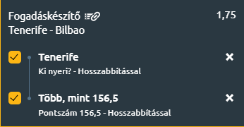 - A hazai pályán kiváló teljesítményt nyújtó és remek formát mutató Tenerife mindenképp esélyesebb! A Bilbao gyengeségei a távoli dobásokban és lepattanózásban hátrányt jelenthetnek, főleg egy olyan csapat ellen, amely rendkívül pontos támadójátékot mutatott be eddig. A biztos Tenerife-meccsgyőzelem mellett minimum 157 pontot várhatunk.