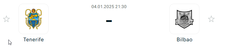 A spanyol kosárlabda-bajnokságban a 3. helyen álló Tenerife a 10. helyezett Bilbao csapatát fogadja hazai körülmények között. Mindkét csapat három-három győzelem után fut ki a parkettra a mai meccsen, így egy jó tempójú, remek meccset láthat a nagyérdemű.