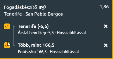 - A két csapat közötti különbség egyértelmű: Tenerife jóval erősebb kerettel, hatékonyabb támadójátékkal és stabilabb labdabiztonsággal rendelkezik, míg a Burgos gyors tempója és sok hibája várhatóan kedvezőtlen lesz számukra. A hazai pálya előnye, a kimagasló formában lévő kulcsemberek és az ellenfél gyenge védekezése alapján valószínű, hogy a Tenerife magabiztos győzelmet arat, akár – 5,5-ről is nyerethetjük őket, a pontok frontján pedig legalább 167-et várhatunk.