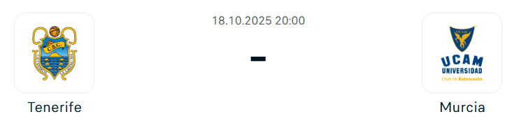 - A Tenerife ugyan vereséggel kezdte a szezont a Spanyol Szuperkupa elődöntőjében a Real Madrid ellen, de azóta négy mérkőzés óta veretlen, és magabiztosan győzött a bajnokságban a Manresa és az Andorra, valamint a Bajnokok Ligájában a Trapani és a Bnei Herzliya ellen. A csapat támadójátéka továbbra is kiemelkedő: támadóhatékonyságban a második helyen áll Spanyolországban, száz támadásra vetítve 133 pontot átlagol, miközben kevés labdát ad el. A rutinos Giorgi Shermadini és Marcelinho Huertas kiváló formában kezdett, Jaime Fernandez hozza a tőle megszokott megbízhatóságot, míg az új szerzemény, Rokas Giedraitis 11 pontos átlagával erősíti a csapat stabilitását. Murcia oldalán szintén remek rajtot láthatunk: Andorrát 95–64-re, Gironát idegenben 91–73-ra győzték le, így önbizalommal telve készülhetnek a nehezebb mérkőzésekre. Sito Alonso együttese ezúttal is fegyelmezett, védekezésre építő játékot mutat, miközben Michael Forrest (13,5 pont/meccs), Sander Raieste (13) és Toni Nakic (11) vezetik a pontgyártást. A Murcia célja, hogy megpróbálja feltörni a Tenerife rendkívül szervezett játékát, ám a hazaiak hatékony támadása és fegyelmezett ritmusa miatt egy lassabb tempójú, kevés pontot hozó mérkőzésre lehet számítani, ahol a Tenerife esélyesebb a győzelemre.