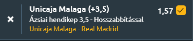 - Az Unicaja nem fogja könnyen feladni, és az eddigi teljesítményük alapján van bennük elég akarat ahhoz, hogy ne engedjék meg a Real Madridnak a söprést. Ibon Navarro csapata korábban már véghez vitt bravúros fordításokat, így egy hazai győzelem ma nem lenne meglepő. Bár Madrid összességében erősebbnek tűnik, idegenben nem voltak annyira magabiztosak, mint hazai környezetben. Szerintem nagyon szoros meccs lesz, ahol várhatóan nyerni tud a Malaga, de én egy kis plusszos hendivel megerősítem őket.