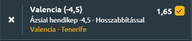 - A forma, a kereterősség, a hazai pálya előnye és az egymás elleni mérleg is egyértelműen Valencia felé billenti a mérleg nyelvét! Az utóbbi öt meccsüket rendre megnyerték a Tenerifével szemben. A támadójátékuk sokoldalú, az egész csapat remek ritmusban van, és nincsenek sérüléssel bajlódó játékosaik sem. A Tenerife bátor, harcos csapat, de a védekezési gyengeségek, a kulcsjátékos Kramer formahanyatlása és a hiányzók miatt nehéz elképzelni, hogy idegenben meg tudják törni a Valenciát. Éppen ezért magabiztos, ötpontos különbségű győzelem is reális.