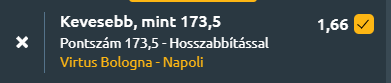 - A Bologna jobb csapat, de a kimenetelre és a hendikepre ajánlott szorzók nem olyan jók, mint amit a pontokra adnak! A Valencia elleni védekezési kihagyás után szinte biztosra vehető, hogy Dusko Ivanovic csapata keményebb, koncentráltabb védekezéssel lép pályára. Mivel a mester nem tűri a lazaságot, várhatóan visszatérnek a szigorú szerkezethez, amely a Real Madrid elleni siker kulcsa is volt. 170 alá várom a pontszámot, de menjünk a biztosra, így a tipp Kevesebb, mint 173,5 pont a mérkőzésen.
