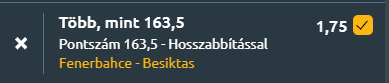 - A Fenerbahce egész Európa egyik legerősebb támadócsapata, így szombaton ismét egy pörgős, dinamikus és nagyon hatékony mérkőzésre számítunk, amihez támadásban biztosan felnő majd a Besiktas csapata is. A tipp: Több mint 163,5 pont a mérkőzésen – 1,76