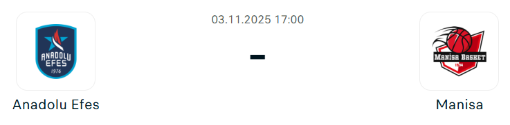 - Az Efes számára a fő kérdés, hogyan újulnak meg a baszkföldi vereség után, ahol mindössze 75 pontot szerzett és támadásban messze elmaradt saját szintjétől. A csapat vezérei Isaia Cordinier és Ercan Osmani, akik átlagosan 15,3 ponttal járulnak hozzá a győzelmekhez, míg PJ Dozier is stabilan teljesít 14 pontos átlaggal. Shane Larkin mindössze egy bajnoki meccsen lépett pályára, de 21 pontot szerzett, így visszatérése kulcsfontosságú lehet, bár Kokoskov hajlamos pihentetni sztárjait. Rodrigue Beaubois játéka kérdéses, míg Georgios Papagiannis és Vincent Poirier biztosan hiányzik. A Manisa hullámzó formában érkezik, az eddigi öt bajnokin három vereséget szenvedett, de legutóbb legyőzte a Merkezefendit, így némileg önbizalommal utazik Isztambulba. Oliver Kostic együttese rövidebb rotációval dolgozik, de küzdőszelleme nem megkérdőjelezhető. A csapat motorja Judah Mintz (15,2 pont), mellette Scoochie Smith és Isaiah Mobley (egyaránt 11,8 pont) biztosítják a fő támadóerőt, míg Yigit Onan stabil kiegészítő szereplő.
