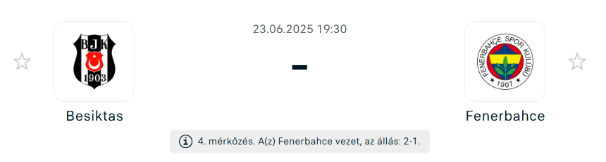 Folytatódik a török bajnoki döntő, a Besiktas ismét hazai pályán fogadja az idény történelmi triplázására hajtó Fenerbahcét. A párharc állása 2–1 a vendégek javára, így a tét hatalmas, a Besiktas a túlélésért, Fenerbahce pedig a bajnoki címért küzd.