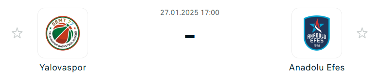 A Yalovaspor és az Anadolu Efes az első ránézésre egyoldalú meccset vívhat egymással. A hazaiak nincsenek rossz formában, több ígéretes eredményük is volt a közelmúltban, a vendégek pedig a felemás eredményeik ellenére még mindig a bajnokság egyik legerősebb keretével rendelkeznek.