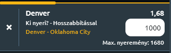 - Kétszer egymás után nem lehet megverni ezt a Denvert, ma ők az esélyesek és jó a szorzójuk single is.