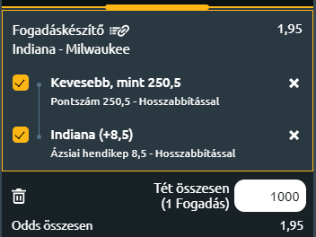 - Az Indiana kiválóan támad, a Bucks gyengébben védekezik. Mindkét gárda kevesebb mint 24 órája játszotta az utolsó meccsét, ez látszani fog ma. A Milwaukee talán valamivel erősebb, de csak akkor ha Lillard hozza az elmúlt három meccsen mutatott formáját. Azt gondolom, hogy 250 pontnál több nem lesz és a hazai gárdát hendikeppel érdemes nyeretni.