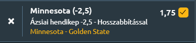 - A Minnesota Towns nélkül is jól játszik, a liga egyik legjobban védekező csapata. Curryt kikapcsolják majd a játékból és a Warriors védekezése gyenge, még Towns nélkül is biztosan nyernek. Kicsi hendiről is el lehet engedni.