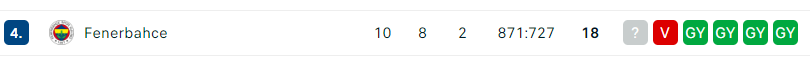 - A Fenerbahce csapatánál nincsenek sérülésproblémák, minden játékos visszatért a keretbe és Itoudis edző rendelkezésére áll. Ennek ellenére a gárda hárommeccses vereségsorozatban van. Először idegenben kaptak ki a Besiktastól a török bajnokságban, majd idegenben Spanyolországban az Euroliga dupla fordulójában. Előbb a Baskonia ellen szenvedtek vereséget Markus Howard őrült lövésével kilenc méterről a mérkőzés utolsó másodperceiben. A Fenerbahce a második negyed közepén 15 pontos előnyre tett szert, de még ez sem volt elég. Ugyancsak vereséget szenvedtek a Barcelona ellen, ahol a meccs nagy részében ők voltak előnyben, de ismét előjött a legnagyobb problémájuk, a védekezés teljesítményének hullámzása! Emiatt pedig már nem egy alkalommal veszítettek mérkőzéseket. Az egyik ilyen meccs a Partizan elleni belgrádi vereség, amikor nagy előnyt "puskáztak el" és a végén kikaptak. Az Anadolu Efes elleni győzelemmel visszatérnének a török bajnokság első helyére, és erre minden esélyük meg is van.