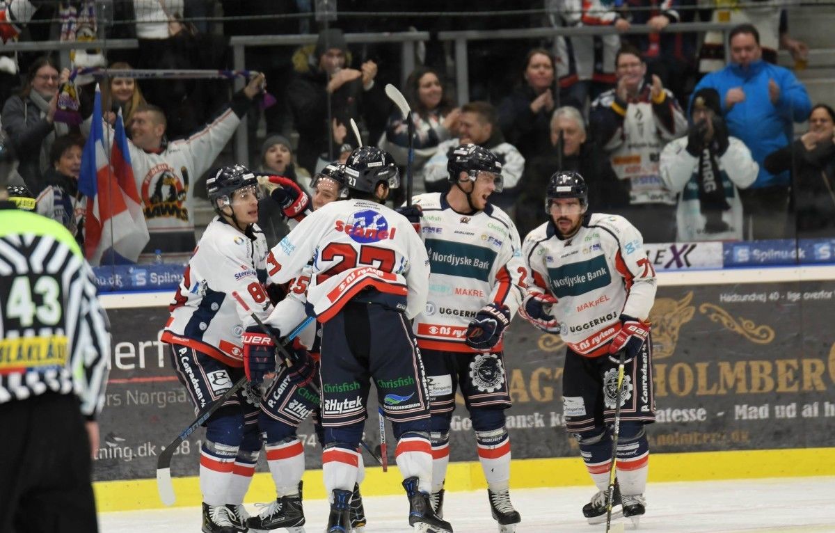- A Frederikshavn tavaly az elődöntőben vérzett el, épp kedd esti ellenfele ellen. Most viszont jó formában jön erre a derbire, hiszen zsinórban 3 bajnoki meccset nyertek meg, a legutóbbi 5-ből is csak egyet veszítettek el (Sönderjyske 1-2). Hazai jégen viszont valami nincs rendben: 6 siker mellett máris 5 vereség áll, ennél csak 2 csapat szerzett kevesebb pontot odahaza (Herning és Odense). A kapuban a cseh Galansky teljesítményére nem lehet panasz (91.4%, 2.52 gól/meccs), viszont a csere Iversen nem teljesít jól (85%, 5.18 gól/meccs), így nem is meglepő, hogy a legutóbbi meccseken már a finn Jukuri ült a padon. A gólok jelentős részét a Fox-Frederiksen-Bumagin-Nielsen négyes hozza ebben az idényben. Ami gond, hogy a kanadai Fox rengeteg időt tölt kiállításban, 58 percével ő a 2. a liga összes játékosát nézve...