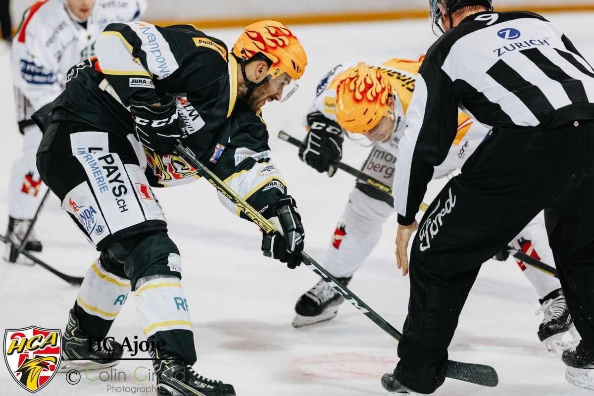 - Az Ajoie a svájci másodosztály egyik top csapata, a tavalyi 2. hely után idén is ebben a pozícióban áll 2 meccsel az alapszakasz vége előtt. A mai derbijén kívül még az Academy Zug elleni csatája van hátra, vagyis papíron még ledolgozható a 6 pontos hátránya az éllovas Kloten csapatával szemben, de ehhez az is kellene, hogy a rivális egy ponttal se gazdagodjon a hátralévő két meccsén. Remek formában van a házigazda: zsinórban 7 bajnoki győzelem, ráadásul a kupában is hatalmas sikert ért el a csapat, ugyanis a Davos elleni döntőt 7-3-ra nyerték meg. Az Ajoie csapatáé a liga legeredményesebb támadósora egyébként: 175 gólt termeltek 42 forduló alatt, ennél még az éllovas Kloten is kevesebbet hozott össze. Viszont a védelemmel akadnak gondok: 27 góllal kapott többet, mint a rivális Kloten csapata, ez pedig nem kis eltérés. Gyakorlatilag bárki képes a gólszerzésre hazai oldalon: Devos és Hazen a liga két leghatékonyabb játékosa, de a Muller-Schmutz-Huber-Frossard-Hauert-Joggi hatos is kiváló szezont fut.