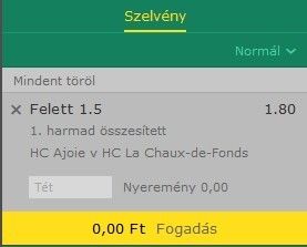- Rendkívül érkes, hogy átböngészve az online irodák fogadási kínálatait, a bet365 által felkínált 1.80-as szorzó az 1. harmadbeli 1.5 gól feletti opcióra kilóg a sorból. Ugyanez más irodáknál 1.60 és 1.70 közti szorzón fogható, a bet365 viszont a jelek szerint erre még nem reagált. Márpedig két kiváló támadósor, számtalan hatékony játékos lép ma pályára ebben a párosításban. Az Ajoie rendre erősen kezdi a mérkőzéseit: legutóbbi 4 hazai meccsének mindegyikén született legalább 2 találat a nyitó harmadban. A Chaux-de-Fonds legutóbbi 5 vendég mérkőzéséből 4 olyan volt, ahol legalább 2 találat született az első 20 perc során. Statisztikailag tehát bőven 50% felett van az esélye annak, hogy jöhet a 1.5 gól feletti tipp az első játékrészben. Minden bizonnyal a bet365 is észbe fog kapni, és csökkenti majd ezt a szorzót a nap folyamán, de addig is érdemes lehet rárepülni!