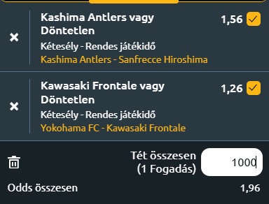 - Yokohama FC – Kawasaki Frontale: A J1 Liga alsóházában vergődő Yokohama FC szombaton hazai pályán fogadja a formajavulásban lévő Kawasaki Frontalét, akik a felsőházba való visszakerülés reményében látogatnak a Mitsuzawa Stadionba. A Yokohama jelenleg a 17. helyen áll, mindössze gólarányának köszönhetően kerüli el a kiesőzónát, és bár az utóbbi hetekben némi életjelet mutattak (nyolc meccsükből négyet megnyertek), még mindig instabilak és kiszolgáltatottak – különösen, hogy többen is kevesebb meccset játszottak náluk. A Cerezo Osaka elleni szenzációs 4–0-s kupasiker lendületet adhat, de a vendég Kawasaki Frontale egészen más szintet képvisel: a korábbi bajnokcsapat ismét formába lendült, utóbbi hét bajnokijából hatot veretlenül hozott le (négy győzelem, két döntetlen), és az élmezőnyhöz is közel került úgy, hogy több meccsel is kevesebbet játszott riválisainál. Ráadásul a két csapat egymás elleni múltja is Kawasaki fölényt jelez, az utóbbi nyolc találkozóból csak egyet veszítettek el, hatot megnyertek. A vendégek tehát egyértelműen kedvezőbb formában, nagyobb játékerővel és erősebb motivációval vágnak neki a mérkőzésnek, miközben a hazaiak kiszámíthatatlan teljesítménye és bizonytalan helyzete tovább nehezíti dolgukat. Összességében a vendég vagy döntetlen (X2) fogadás nagyon esélyes, mert a Kawasaki Frontale jó formában van, és a közelmúltban rendre legyőzte a gyengélkedő Yokohamát!