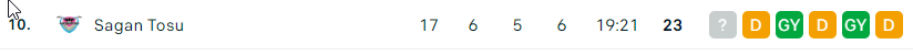 - A vendégek az utolsó hat bajnoki mérkőzésükön veretlenek, de alig várják, hogy visszavágjanak a J-Liga Kupában elszenvedett súlyos vereségért. A Shonan Bellmare jelenleg a 17. helyen áll a J1 Liga tabelláján, miután a szezon eddigi 16 mérkőzésén mindössze 12 pontot gyűjtött, és csak a gólkülönbség miatt van a kieső zónán kívül. Satoshi Yamaguchi csapata ebben a szezonban két győzelmet aratott az élvonalban, a legutóbbi két győzelmet április 1-jén aratta a Gamba Osaka ellen. A Gamba Osaka elleni 4-1-es győzelem óta a Shonan Bellmare mindössze négy pontot gyűjtött, és 10 meccs óta nyeretlen a bajnokságban. Ez nagyon kevés. Yamaguchi csapata számára azonban pozitívum, hogy a BTOP Hokkaido elleni 6-1-es győzelemmel bejutottak a Császár Kupa harmadik fordulójába. A Shonan Bellmare az egyetlen csapat a J1 Ligában, amely még nem szerzett hibátlan mérleget ebben a szezonban, ezért nagyon szeretnének egy erős védekezést bemutatni, hogy véget vessenek ennek a hullámzó formának. A Sagan legutóbbi vereségét a bajnokságban május 7-én szenvedte el a Kawasaki ellen, és azóta Kawai csapata a következő hat meccsen 12 pontot gyűjtött.