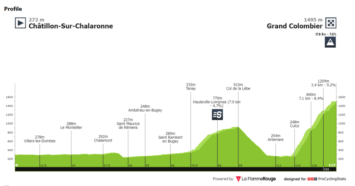 13 szakasz: Châtillon-Sur-Chalaronne - Grand Colombier (137.8km)
