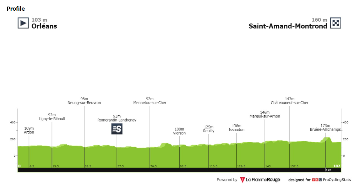 - A mai szakasz része annak a négynapos útvonalnak, amivel a Pireneusokat közelíti meg a mezőny. A mai menet Orléansból Saint-Amand-Montrondba, Julian Alaphilippe szülővárosába vezet. Nehéz lesz megjósolni ennek a szakasznak a kimenetelét, mivel az időjárás jelentős szerepet játszhat! A Sologne-i erdőn keresztül haladva a mezőny sík és védett utakon fog versenyezni az első 62 kilométeren Issoudun-ig. A Cher megyébe érve a mezőny egy nagyon komoly oldalszeles útvonalon halad majd, itt bizony nagyon könnyen szétszakadhat a mezőny! A mezőny végén pedig lesz egy rövid domb, amin további támadások várhatóak. Elsőre a sima síksprintes szakasznak tűnő etap, bizony, komoly nehézségeket is rejt magában.