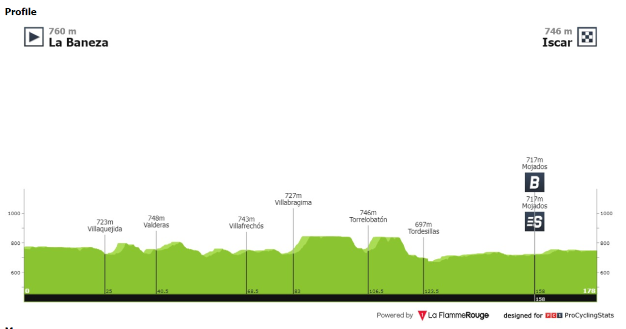 - Ritka az olyan tipikus sprintszakasz a Vueltákon, mint ez a mai lesz. 766 méterrel a tengerszint felett kezdődik, 750 méterrel a tengerszint felett ér véget, és 177,5 kilométeres hosszán alig hullámzik.