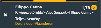 A főtippem pedig egy párharc, Filippo Ganna előrébb végez, mint Filip Degaert – 1,74
