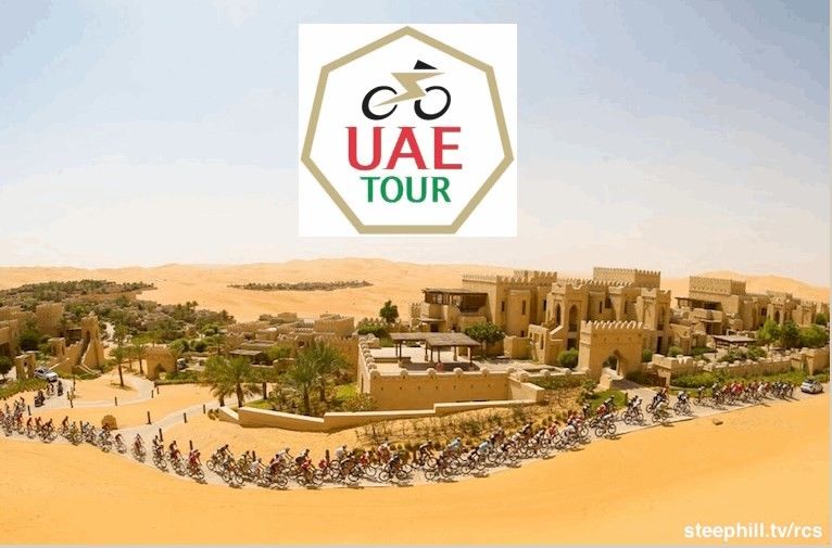 A sivatagi versenyeken nagy a hőség és állandóan fúj az erős szél. A képen az UAE Tour egy pillanatképe: