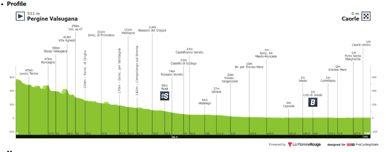 17. szakasz: Pergine Valsugana – Caorle (197km)