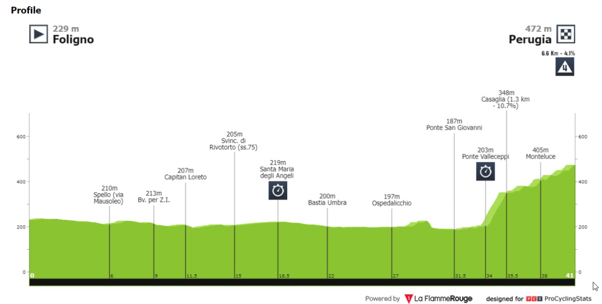 7. szakasz: Foligno - Perugia (40.6km)