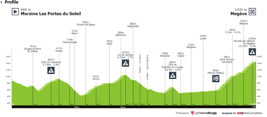 - Ismét egy jó kis hegyi szakasz, ami nem tűnik a legnehezebbnek, de azért rendesen meg fogja gyötörni a mezőnyt. Két 4-es, egy 3-as és egy 2-es hegy, ez utóbbi a Megéve, ami az egész 150 kilométeres szakasz legvégén van, hegyi befutóval. A 4% átlagos meredekség nem olyan vészes, de mindez 19,3 kilométeren keresztül azért nem gyenge. Nem ezen a szakaszon fogják kiosztani a nagy különbségeket, de azért az összetettben érdekelteknek oda kell figyelnie.