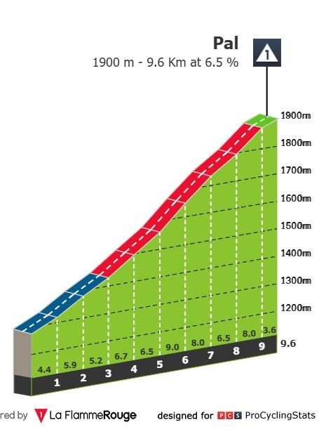 - Pal: 9,6 km, 6,3%, 612 méter szintkülönbség, 1901 m