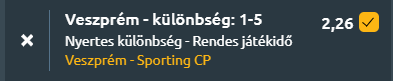 Tipp1: Veszprém nyer – 1,34 (9/10)