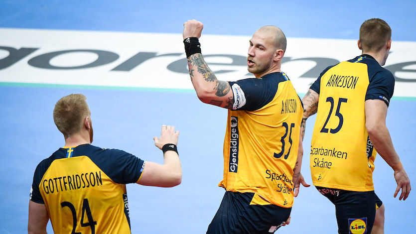 - A svéd válogatott az első fordulóban hozta a papírformát, közel tizenkétezer néző előtt alaposan helyben hagyta a svájci válogatottat (34-21). A találkozón parádésan játszott az egyszer már visszavonult, de a PSG kedvéért ismét játékra jelentkező Ekdahl du Rietz, a veszprémi Andreas Nilsson és a Löwen szélsője Tollbring, mindhárom játékos hatszor volt eredményes. A mérkőzés legjobbjának azonban a kapuban brillírozó Palickat választották, aki a lövések 47%-át hatástalanította.