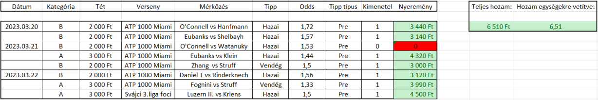A tegnapi napnak köszönhetően, már összesen 3 nap alatt 6,51 egység pluszban vagyunk a sorozat során. Nagyon fontos a bankroll építés során, hogy tartsuk be az előírt egységeket, mivel ha mindent ugyanannyival raknánk, akkor más eredmény tud kijönni.