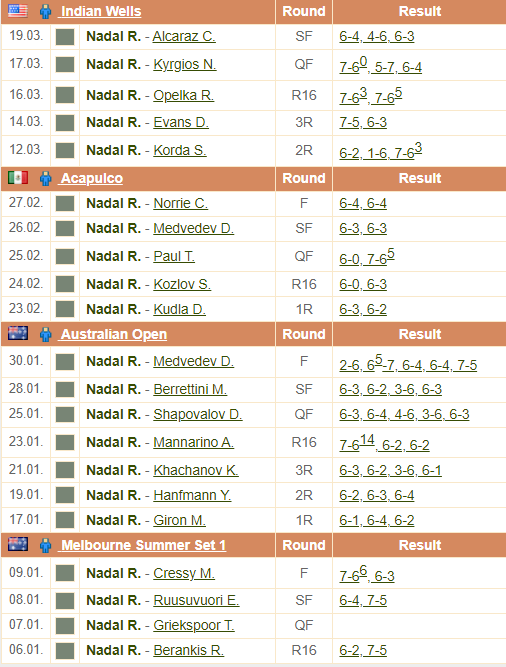 A szelvényen tehát: Dellien és Nadal. Holnap két challenger kezdődik majd, három nap múlva pedig Miami Masters, amit biztosan nem Nadal nyer, hiszen nem indul.