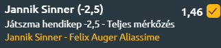 Érdekes módon az egymás elleni meccseket tekintve a kanadai 2-1-re vezet. Éppen Cincinnatiben találkoztak legutóbb, akkor Sinner csak két játékot engedett Auger-Aliassime-nek, akinek győzelmei 2022-ben születtek.