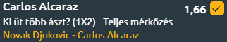 Azonban mi más irányba visszük el a fogadókat. Szerintünk Alcaraz fog több ászt ütni. Erre 1,66 az odds. A spanyol szervája jobbnak mondható, nagyobb sebességgel üti meg a labdát adogatásai során. A murciai csak 1-szer vesztette el a szerváját eddig a tornán, ami döbbenetes statisztika. 1995 óta a negyedik ember, aki így jutott el a legjobb négyig.