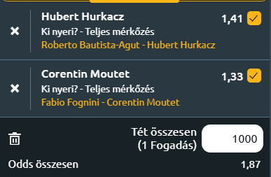 - Fabio Fognini – Corentin Moutet: Ez a meccs is a veterán-fiatal ellentéten dől el elsősorban! Fabio Fognini tapasztalt, kreatív olasz veterán, aki alapvonalról technikás játékával komoly sikereket ért el korábban. Már fénykorában is a salak volt a kedvenc borítása, de játékintelligenciája és technikai tudása miatt minden borításon eredményes tudott lenni. Hátránya a mentális faktor, koncentrációs formája rendkívül hullámzó, hajlamos a hisztire, sőt még a sportszerűtlen beszólogatások sem állnak tőle távol. Már 38 éves és mint az előbbi meccsnél is említettem, a füves pálya igényli a legjobb kondíciót! Corentin Moutet ezzel szemben fiatal, energikus francia játékos, aki rendkívül technikás és kreatív teniszező, repertoárja széles. Emellett nagyon gyors a pályán és mentális téren sokkal kiegyensúlyozottabb, mint Fognini. Ő az esélyese a meccsnek!