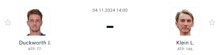 Szintén Belgrádban a 32 éves ausztrál James Duckworth és a 26 éves szlovák Lukas Klein találkoznak. Lássuk, ki miben erős-, gyenge és az esélyeket.
