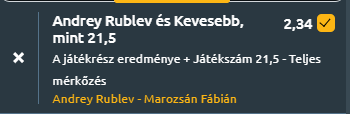 A gyors kemény borítás Rublev játékának kedvez, míg Marozsánnak kevés ideje marad reagálni a pontos, erőteljes ütéseire. Rublev stabil teljesítménye és kiegyensúlyozott idei formája alapján kevés esély van arra, hogy hibát kövessen el Marozsán ellen, aki jelenleg formán kívül játszik. Rublev magabiztos győzelemre számíthat, míg Marozsánnak egy nagy bravúrra lenne szüksége még a szettgyőzelemhez is. Úgy érzem, ez sima lesz.