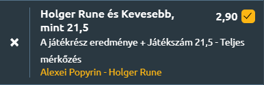 - Rune Müllert és előtte Mpetsi Perricardot verte sima két szettben. Ez előbbi kifejezetten fontos, hiszen Perricard stílusa nagyban hasonlít Popyrinére! Az ausztrál tavaly megnyerte ezt a tornát, ezért motivált, de ő egy ilyen összetett és agresszív játékossal nehezen bír! A dán játékos ugyan nem mindig megbízható formában játszik, de ha sikerül fókuszált maradnia, akkor komplett játékával könnyedén kizökkentheti Popyrint az agresszív, egyoldalú alapjátékából. Rune technikai repertoárja és variációs lehetőségei különösen hatásosak lehetnek egy olyan ellenféllel szemben, aki elsősorban támadó jellegű játékra épít. Mindezek alapján, ha Rune megfelelően koncentrál, akkor két szettben eldöntheti a találkozót a maga javára. Erre most van jó esély Perricard és Müller elleni játéka alapján!