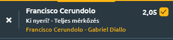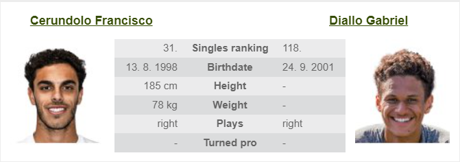 - Cerundolo tapasztalata nagy előnyt jelenthet Diallo ellen, mivel sokkal több meccset játszott már magas szinten. Az argentin stabil alapvonaljátéka és jó lábmunkája megnehezítheti Diallo számára, hogy gyorsan pontokat szerezzen. Ugyanakkor Diallo nagy szervái és agresszív stílusa előnyös lehet a gyors, fedett kemény borításon, ahol a pontok gyorsabban zajlanak. Ha Diallo képes lesz folyamatos nyomás alatt tartani Cerundolót, akkor lehet esélye, de Cerundolo védekező képessége és tapasztalata miatt valószínűleg ő fog jobban alkalmazkodni a meccshez! Bár a fogadóirodák Diallót tartják esélyesebbnek, Cerundolo tapasztalata és kitartó stílusa miatt mégis nyerhet az argentin. A fiatal Diallónak nehéz lesz átvennie az irányítást, különösen egy olyan játékos ellen, aki tapasztalt és képes jól alkalmazkodni.