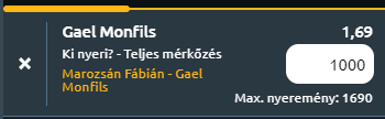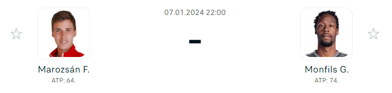 - Mai ellenfele a top magyar játékos, aki tavaly meglepetésre megverte Carlos Alcarazt is! Univerzális teniszező Fábi, de három CH-tornagyőzelme mind salakos! Viszont ami a legfontosabb az, hogy az év végét tavaly egy komoly és hosszú betegséggel fejezte be, ebből fakadóan az alapozása és a felkészülése fizikailag nem volt teljes, mondhatni még tart! Fábi messze nem most van a legjobb formában és ezt ő maga is elismeri! Ezen a kemény borításon teljesen topformában is nehéz dolga lenne Monfils ellen, de így szerintem nincs esélye. Monfils nyer.