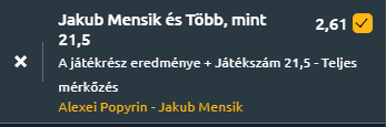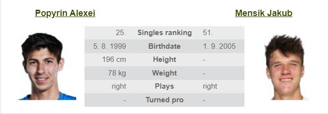 - Fedett kemény pályán Popyrin nagy előnye a szervája és az erőteljes alapvonaljátéka. Ez a felület kedvezhet neki, hiszen a gyors pályákon kevesebb idő jut az ellenfélnek, hogy reagáljon a nagy sebességű szervákra és a támadó játékra. Azonban Jakub Mensik is kiemelkedő teljesítményt nyújtott már Popyrin ellen, amikor legyőzte őt Umagban, habár az a meccs salakon zajlott, és Popyrin hibákkal küszködött. Mensik egy jól alkalmazkodó játékos, aki a kemény borítású pályán is kihasználhatja gyors reakcióit és mozgékonyságát. A 19 éves fiatal kiválóan képes megszorongatni az ellenfeleit azzal, hogy remekül kombinálja az erőt és a pályán való védekezést, ami különösen fontos lehet Popyrin nagy ütései ellen ls bizony technikásabb is, mint az ausztrál! Popyrin jó adogatójátéka miatt mindenképp hosszú meccset várok, de a cseh fog nyerni a végén! Tipp: