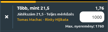 - Mindketten fiatal, lendületes és motivált játékosok, akik hasonló stílusban tenszeznek. Talán a cseh fiú valamivel előrébb tart, de Rinky hazai pályája ezt ellensúlyozza. Overes meccset várok, legalább 22 game-mel.
