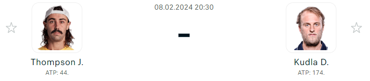 - Ha megnézzük a két játékos testalkatát és stílusát, valamint eredményeit, azt tapasztalhatjuk, hogy nagy a hasonlóság. Mindketten erős középszintű-, elsősorban kemény és gyors borítást kedvelő játékosok. Mindketten sok (Thompson:11, Kudla:9) CH-tornagyőzelmet szereztek zömmel kemény és gyors pályákon, de van egy-egy salakos trófea is mindkettőnek. Jól adogatnak, agresszív alapvonalas játékot játszanak. Mentálisan erősek, technikailag nem a csúcs egyik sem. Thompson eredményesebb teniszező és idén is jó formában van. Brisbane-ben megverte Rafa Nadalt, majd az elődöntőben kikapott Dimitrov ellen. Adelaide-ben Musetti verte meg, az AO-n a második körben esett ki Tsitsipasszal szemben. Róla nagyjából el lehet mondani, hogy kiszámítható játékos. Akik ellen esélyes, ott többnyire nyer is, akik jobbak, azok zömében verik is. Kudla esetében is jó eredmények születtek idén, de nem ATP tornán, hanem CH-n. Cleveland-ben az eldőntőig jutott. Egymás ellen tovább fokozódik a hasonlóság és a kiegyensúlyzottság: 4-2-re vezet Thompson.