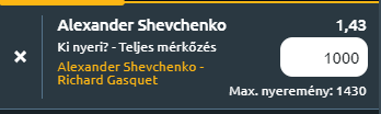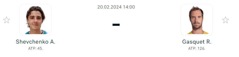 - Richard Gasquet egykor TOP10-es játékos volt, de már rohanvást közelít a 38. életéve felé és bár még mindig sokkal jobban bírja, mint sok más hasonló életkorban lévő játékos, de azért már korlátai vannak! Legutóbb a Manama CH-n indult, ott végig is verte a mezőnyt és eljutott a döntőbe, ahol Kukushkin megverte! Alex Shevchenko pedig már bőven sokkal jobb teniszező, mint Kukushkin! Shevchenko pedig egy rendkívül agresszív és univerzális játékos, aki atletikusságban, sebességben már sokkal jobb játékos, mint a francia. Lehet, hogy technikai téren nem, de ez most itt kevés lesz! Az orosz nemrég egy nagyon komoly meccsen verte meg a TOP10-es Runét, jó formában van, motivált és mentálisan is erős. Egész egyszerűen a 37 éves Gasquet számára ő már sok. Shevchenko győzelme jó szorzó az esélyességéhez viszonyítva!