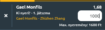 - A francia veterán játékos több emelettel magasabban van a tenisz ranglétráján, mint Zhang. Csupán az életkor- és az ebből fakadó kondícionális határok azok, amelyek beleszólhatnak ma Monfils győzelmébe. Mindkettő magas, jól szerválnak és van bennük ütőerő, csak Monfils mindenben sokkal jobb, főleg technikai téren. Az első szettben még biztosan bírni fogja, ezért az első szettes győzelmét választottam, bár a meccset is jó eséllyel le fogja hozni még.